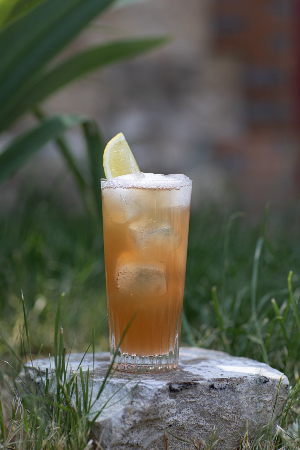 Shaker tous les ingrédients puis verser dans un verre rempli de glaçons et compléter d'eau gazeuse